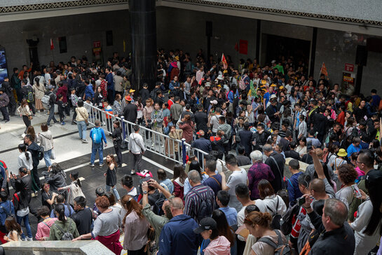 Der erste Mai ist in China einer der höchsten Feiertage. Dem entsprechend war der Besucherandrang groß und eine "Mauer" aus sicher 7-8 Reihen von Besuchern stand zwischen mir und dem Foto.