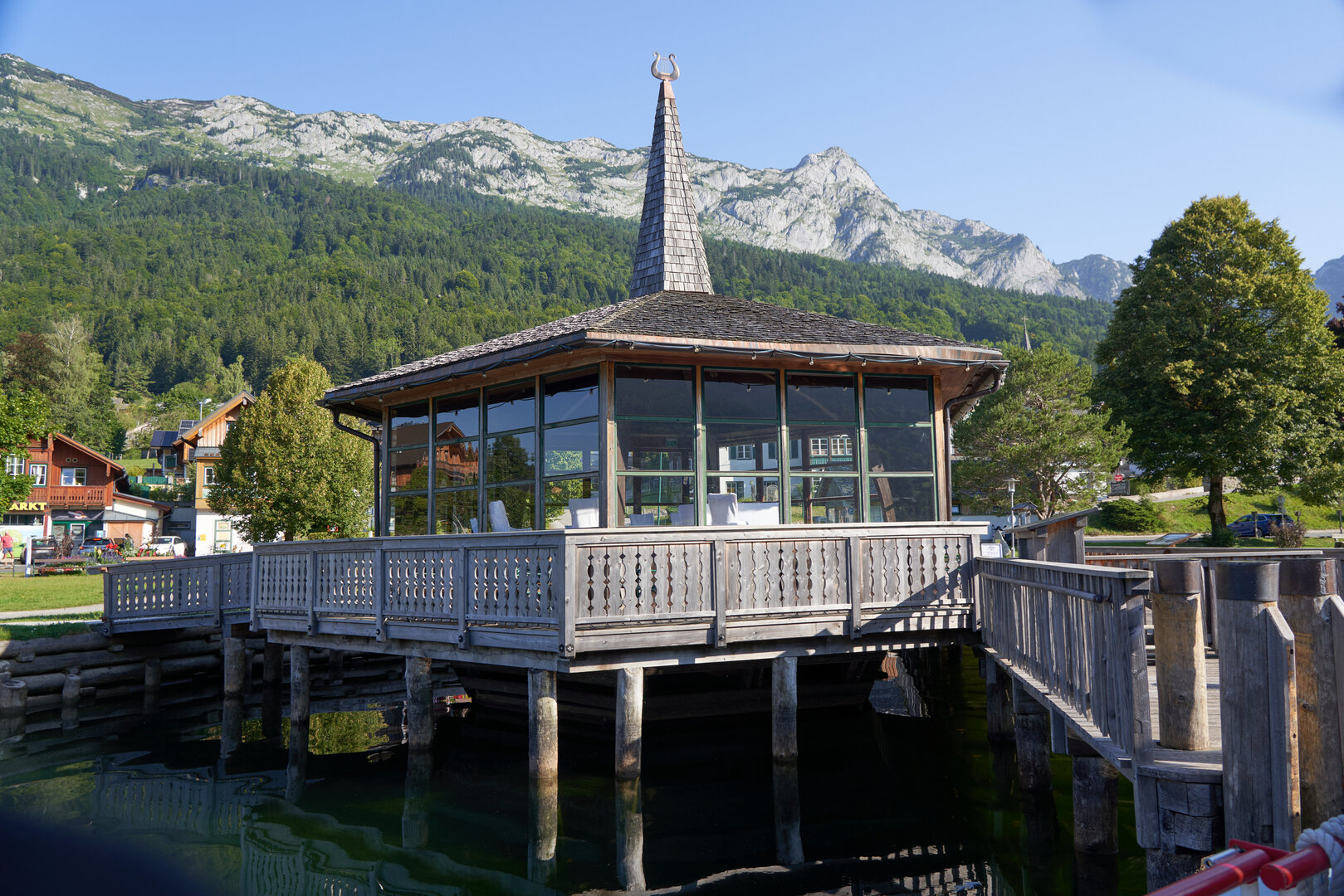 Beim Seehotel am Grundlsee. Dort stehen kostenpflichtige Parkplätze zur Verfügung (Tagespauschale: €8).