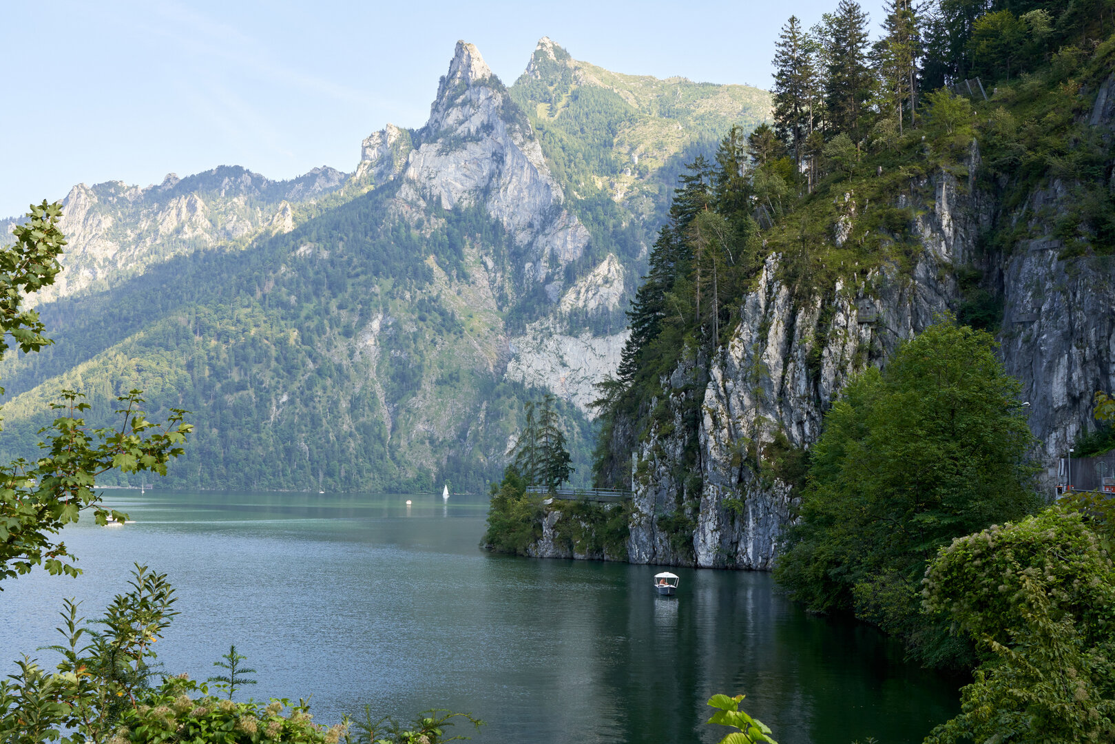 Nach dem Rückweg über dieselbe Strecke bietet sich in Gößl eine kurze Pause an – etwa bei einem Eiskaffee im Gasthaus. Die Heimfahrt führt entlang des Traunsees, wo sich bei klarem Wetter noch ein Blick auf den Traunstein lohnt. Insgesamt eine ruhige, gut organisierte Tagestour mit kurzen Wanderabschnitten, zwei Bootspassagen und landschaftlich reizvollen Stationen.