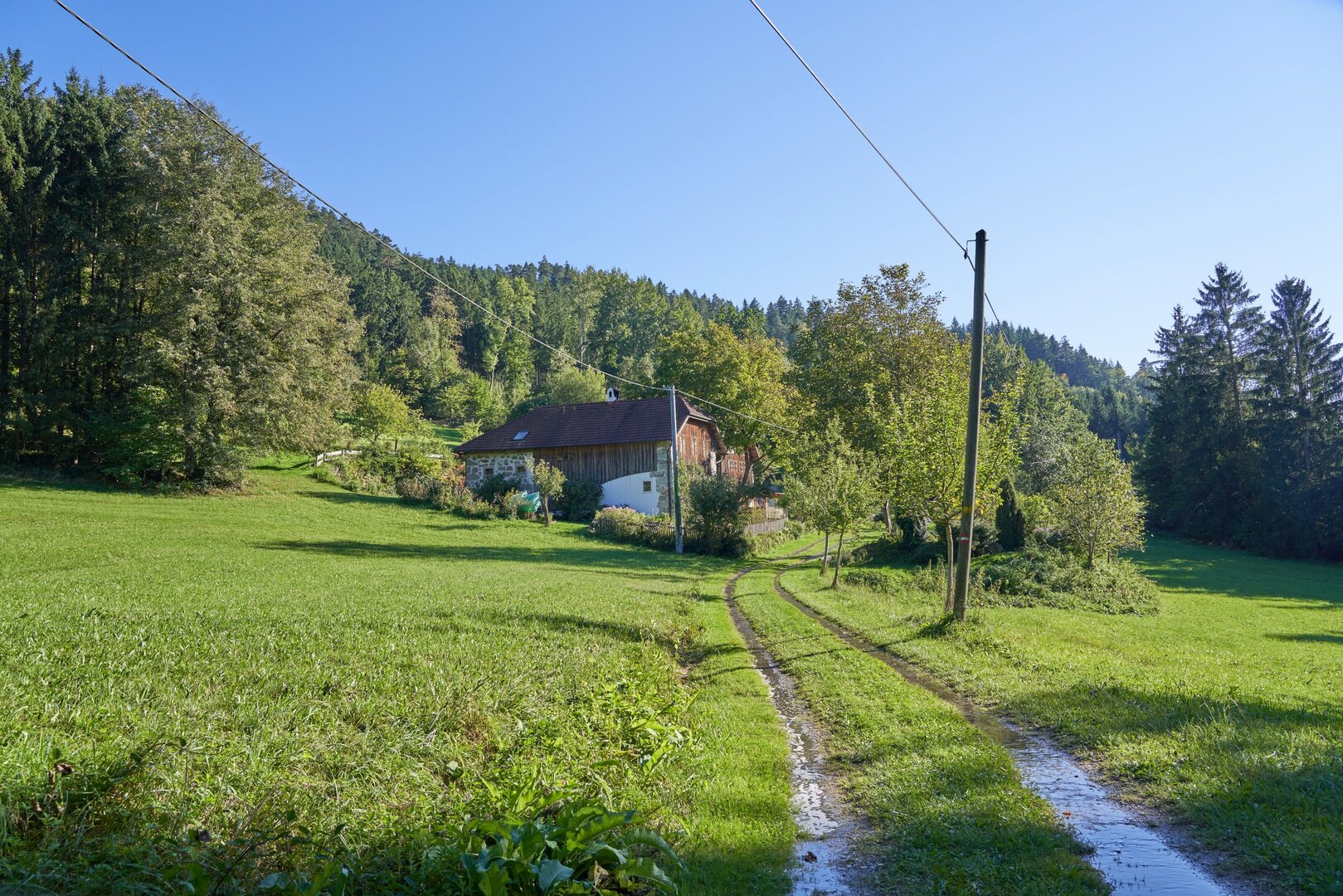 Ja – Gehöfte, Kapellen, Wiesen, Wälder und Technikgeschichte. Und manchmal ein Fahrgeschäft mitten im Kirtag.