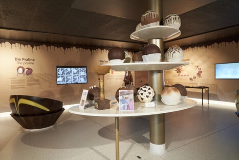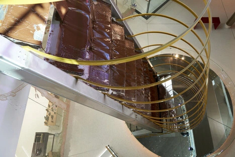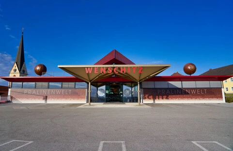 In Allhaming erwartete uns das Schoko-Paradies des Chocolatier Wenschitz. Schon beim Eintritt zieht der weltweit höchste Schokobrunnen alle Blicke auf sich: beeindruckende 12 Meter süßer Architektur.