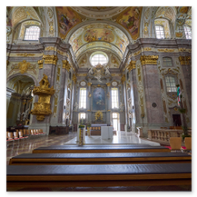 Eine prunkvolle Innenausstattung mit Fresken von Daniel Gran rundet das Ensemble ab.