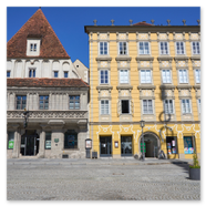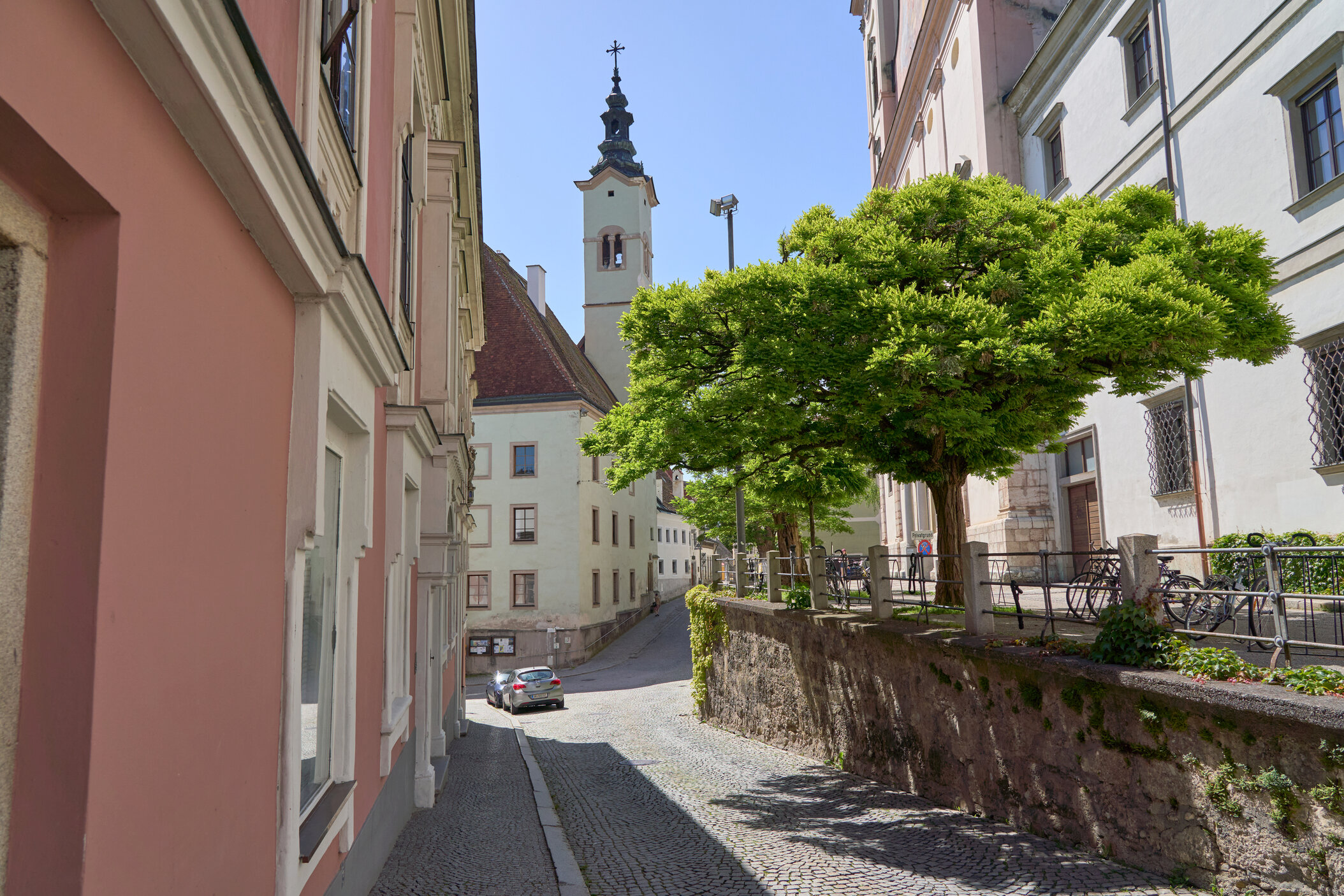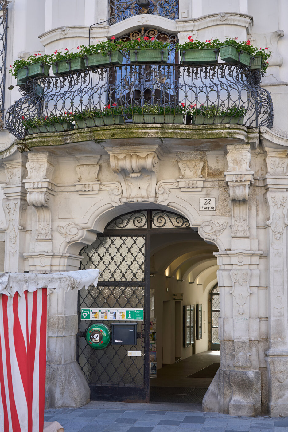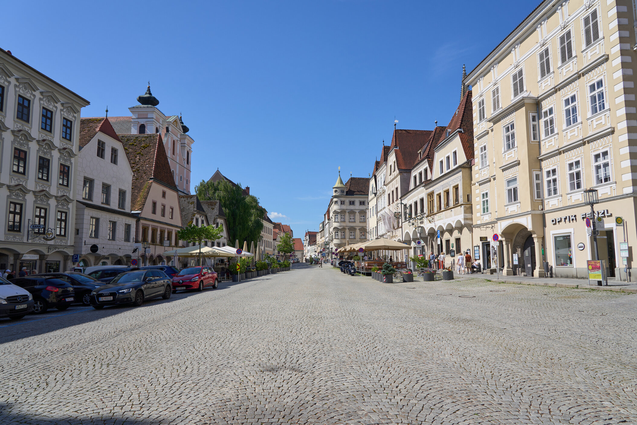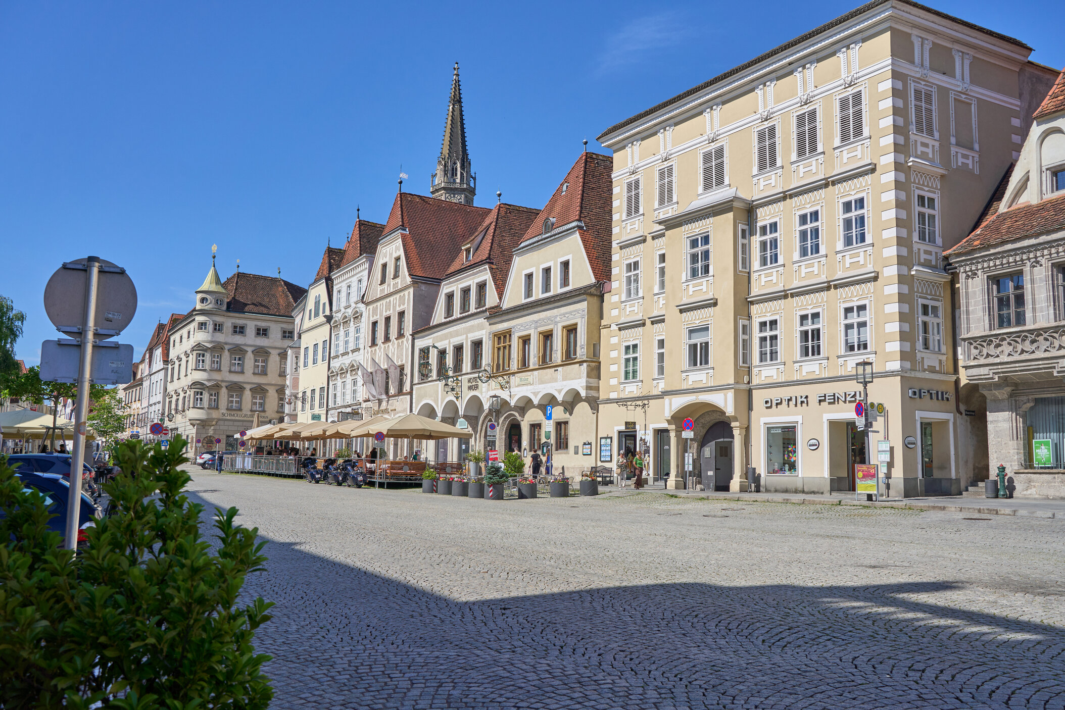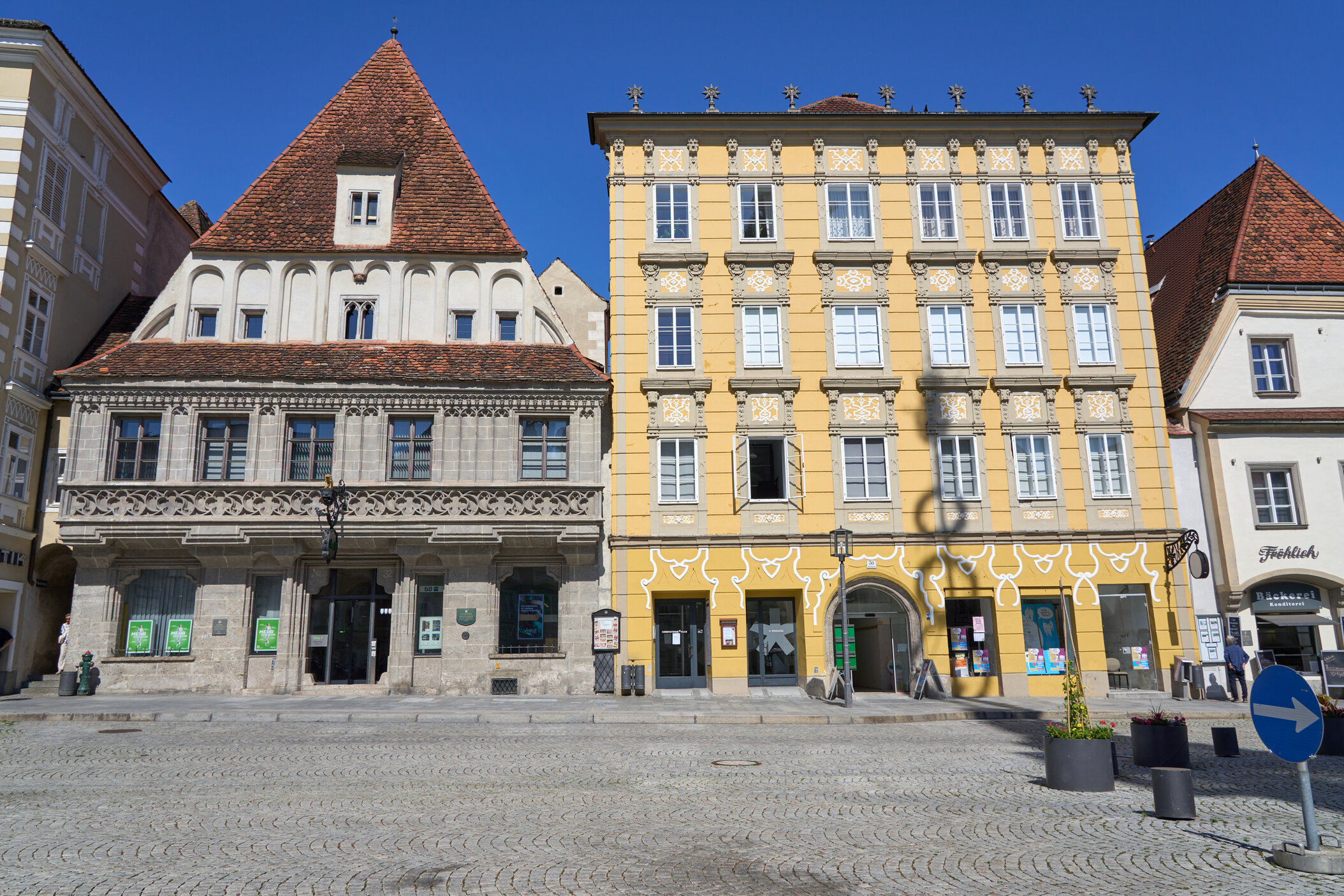 Der historische Stadtplatz ist ein architektonisches Juwel mit Bürgerhäusern aus verschiedenen Epochen. Besonders auffällig: das Bummerlhaus, eines der besterhaltenen gotischen Profanbauten Österreichs