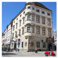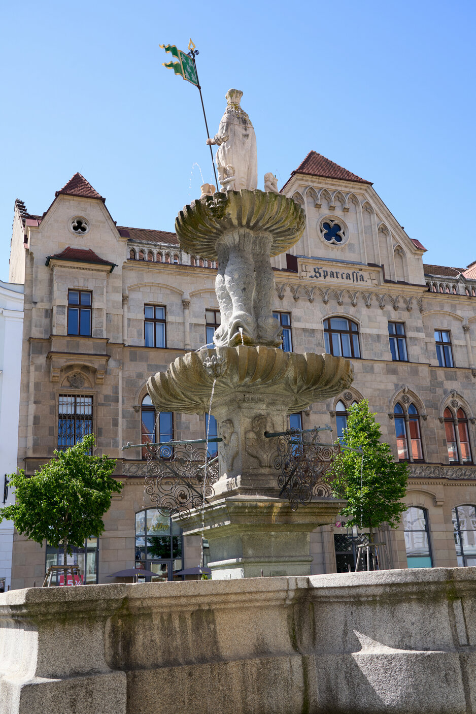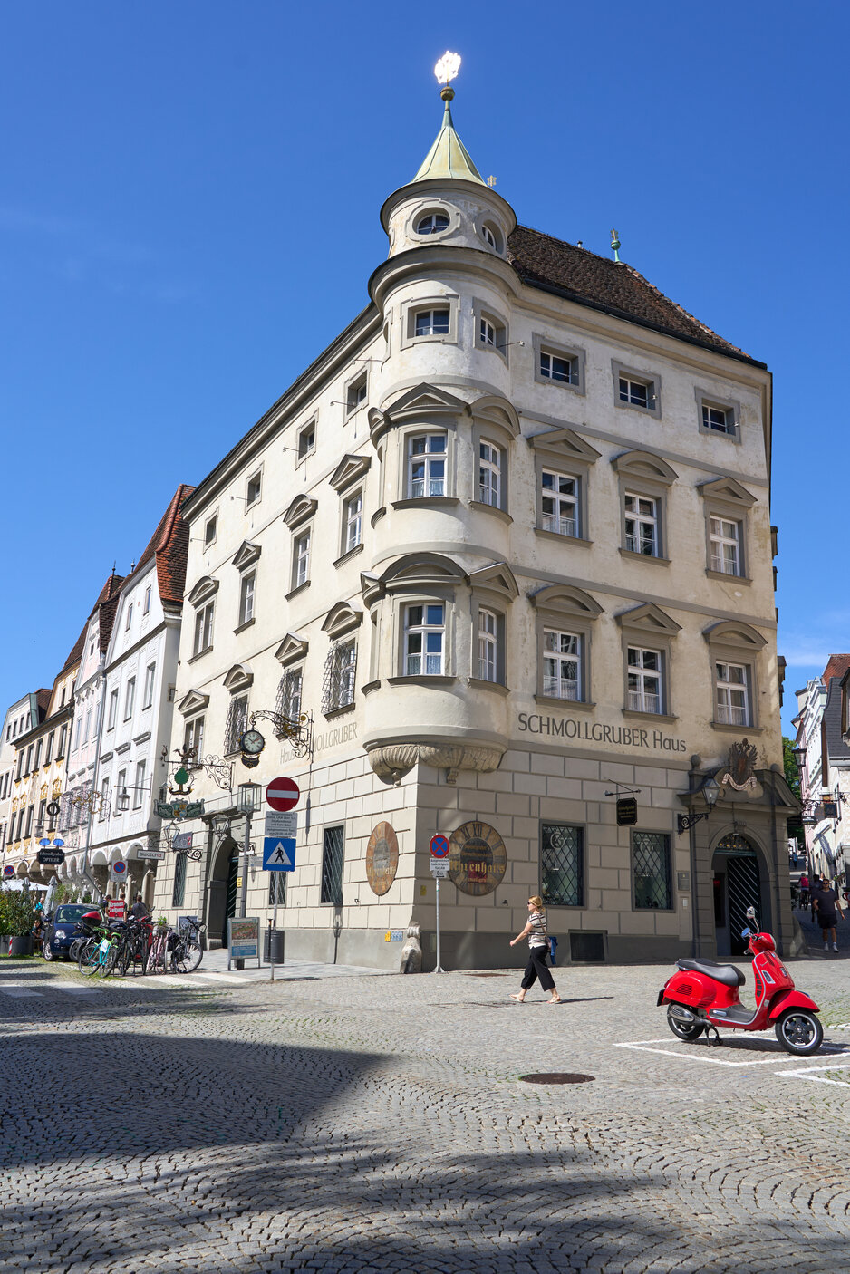 Start am Stadtplatz. Beginne am prachtvollen Stadtplatz mit dem berühmten Bummerlhaus. Die gotische Fassade ist ein echter Blickfang – perfekt für das erste Foto!