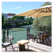 Zeit für eine Pause! In der Nähe der Brücken findest du gemütliche Cafés – z. B. das Café Zwischenbrücken mit Blick aufs Wasser.