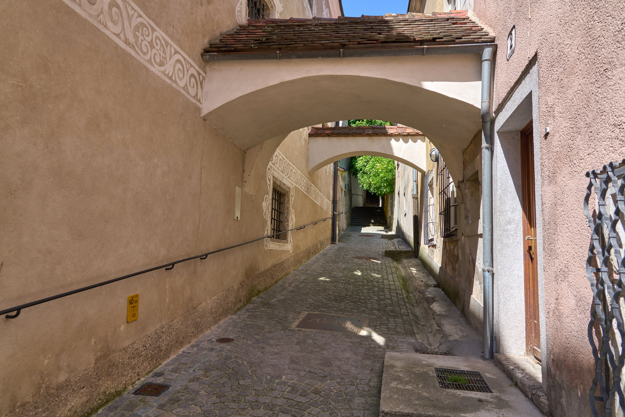 Durch die Enge Gasse. Spaziere durch die charmante Enge Gasse mit ihren historischen Durchhäusern. Hier spürt man das mittelalterliche Flair der Stadt besonders intensiv.