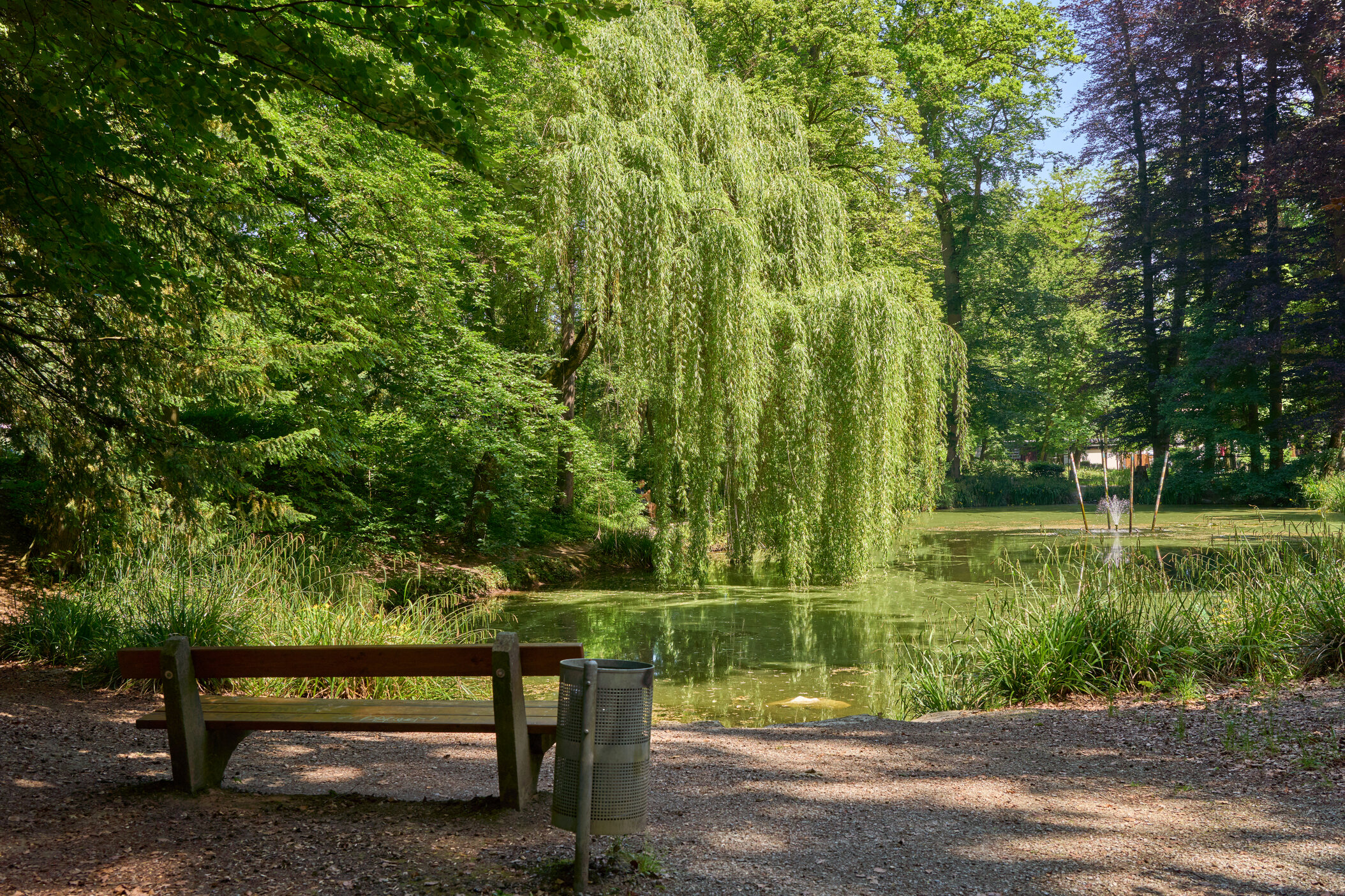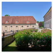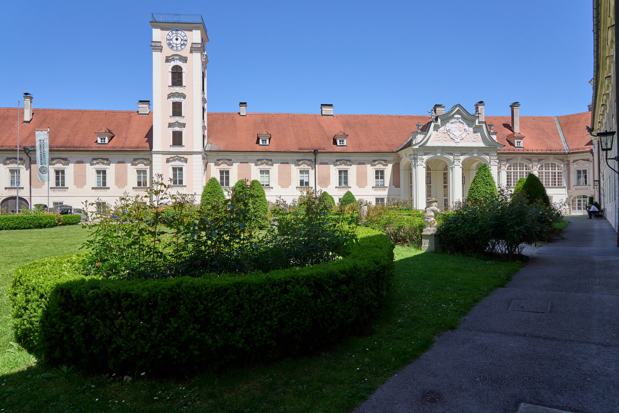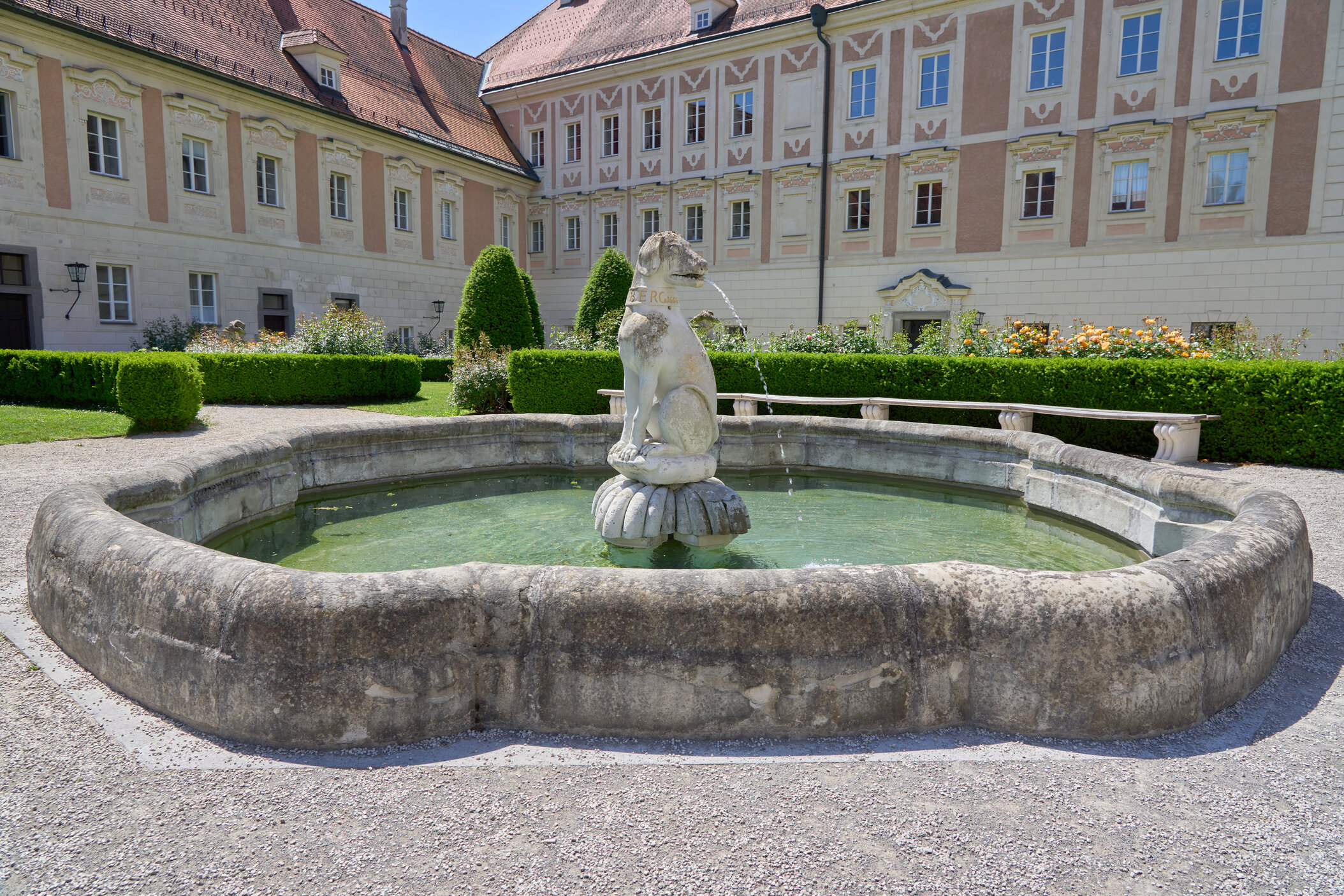 Überquere die Brücke zum Schloss Lamberg. Der barocke Bau mit seinem Park lädt zum Verweilen ein – und bietet einen tollen Blick über die Stadt.