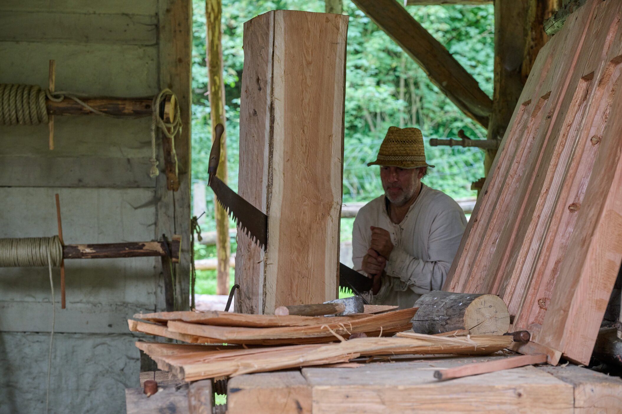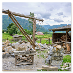 Arbeiten wie im Mittelalter: Tierkraft statt Maschinen, Handarbeit, echtes Burgleben zum Anfassen.
