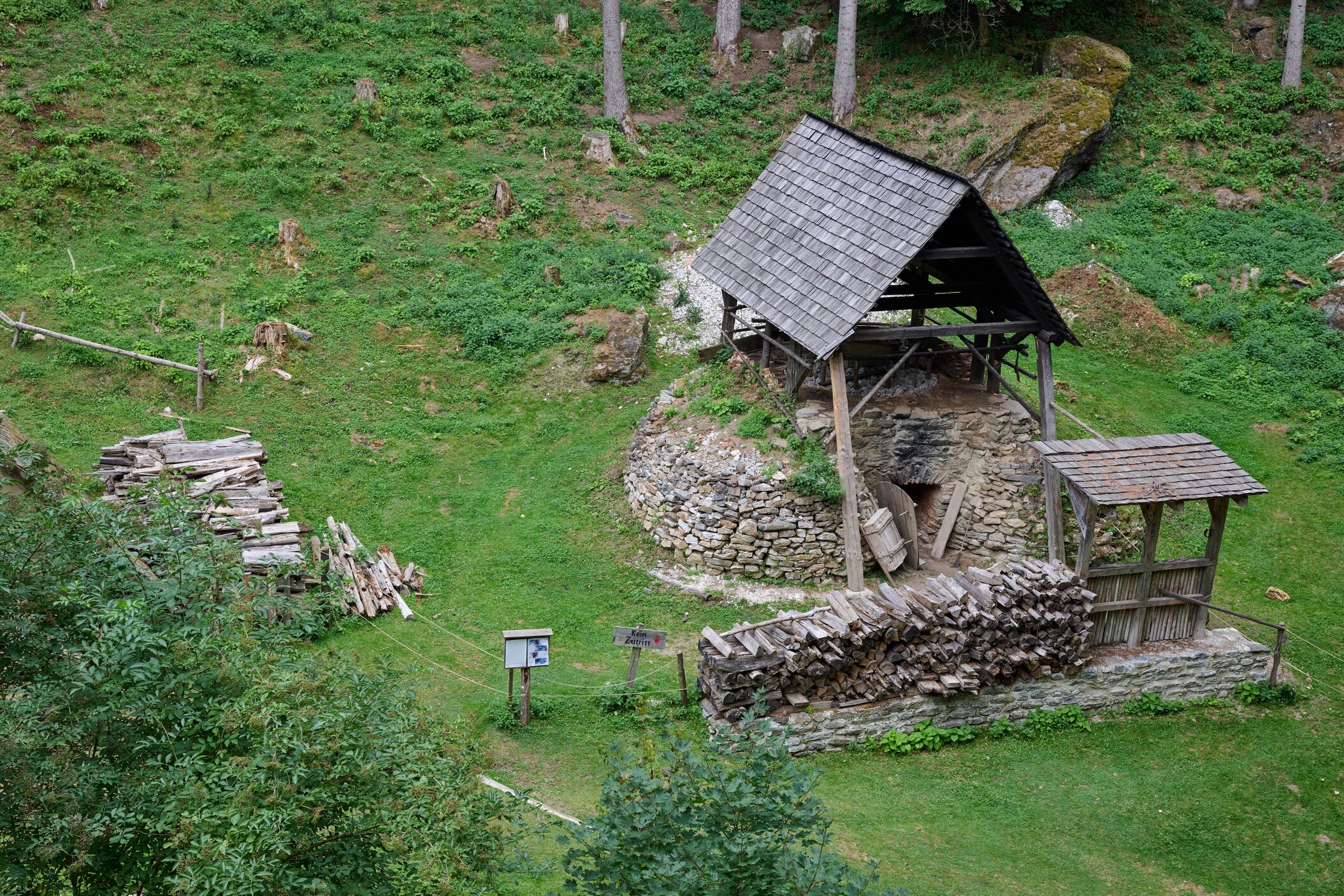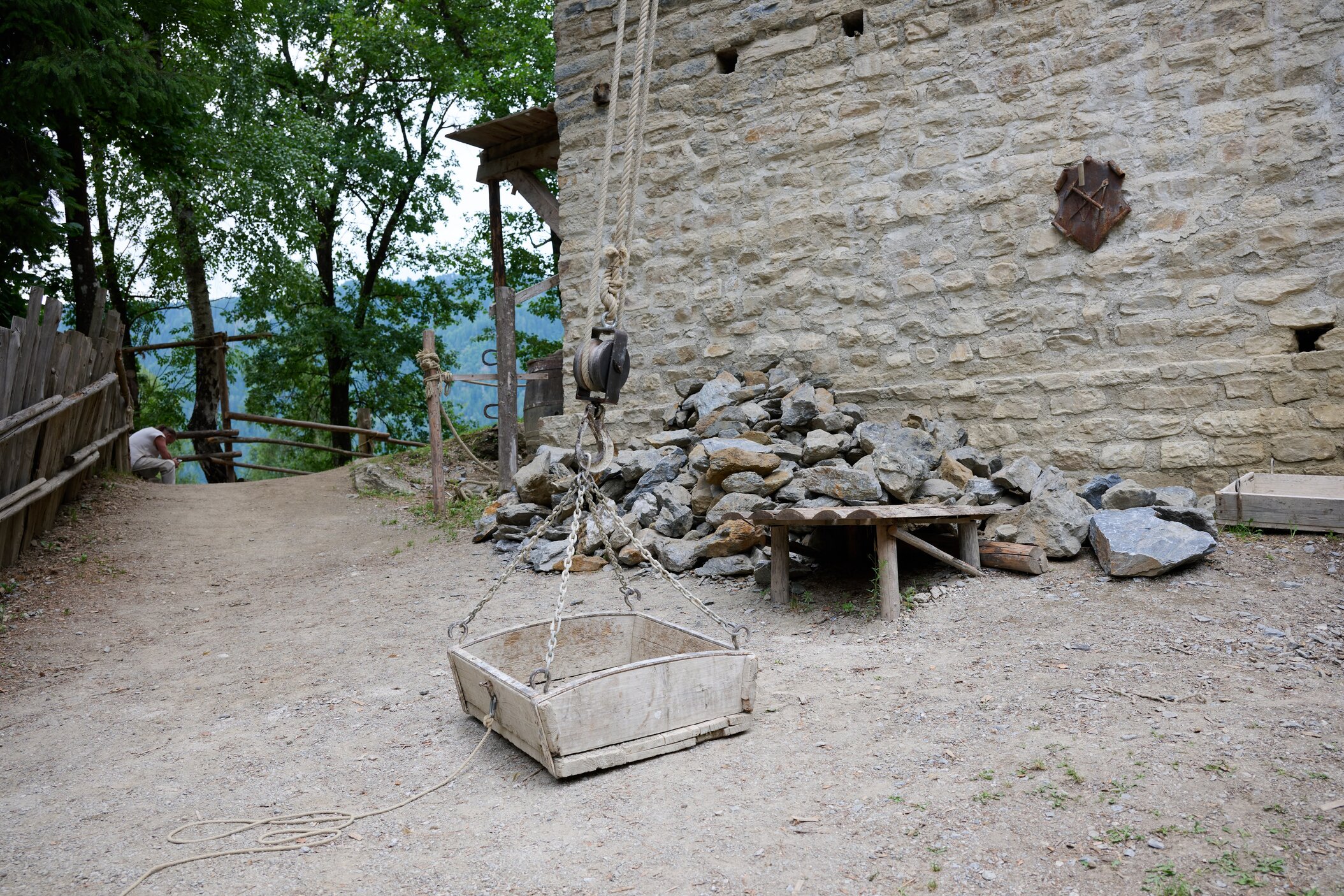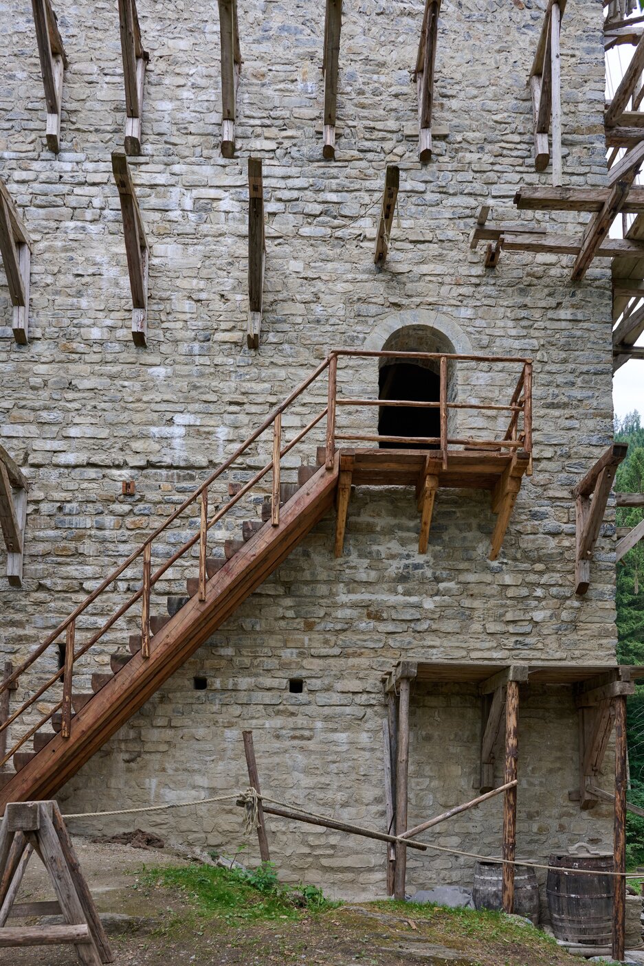 Eine Höhenburg entsteht – komplett mit mittelalterlichen Methoden: ohne Strom, Maschinen oder moderne Hilfsmittel. Gearbeitet wird nur mit Holz, Stein und Kalk.