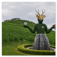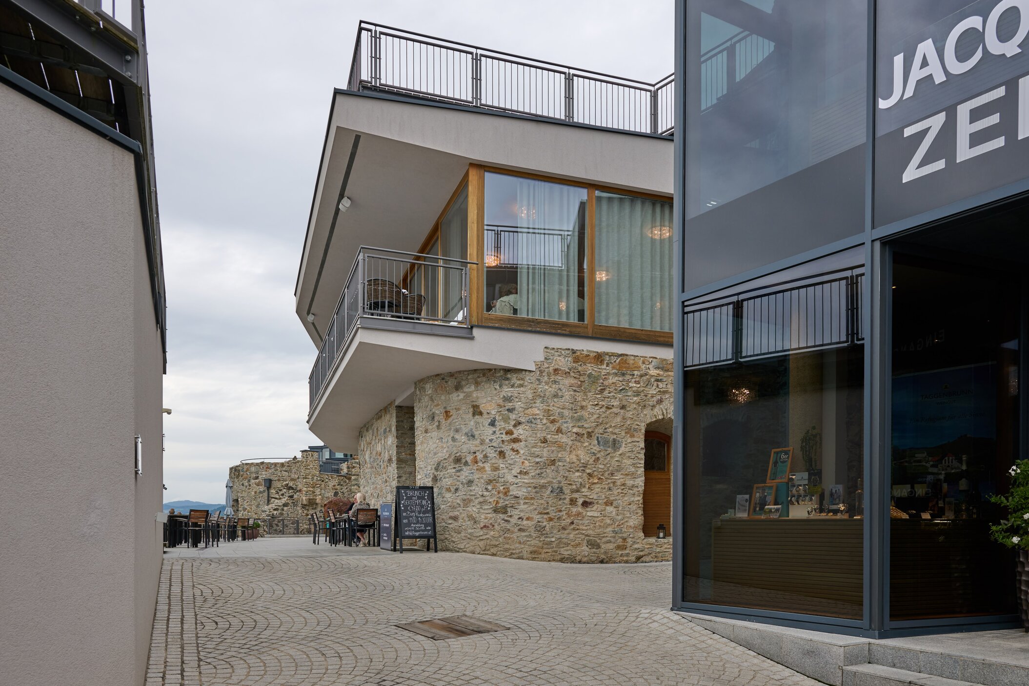 In Taggenbrunn angekommen, betreten wir eine Burg, die wie aus dem Dornröschenschlaf erwacht scheint. Alfred Riedl, Gründer der Marke Jacques Lemans, ließ sie ab den 2000er-Jahren restaurieren – heute beherbergt sie Restaurant, Weingut und eine von André Heller kuratierte Ausstellung.