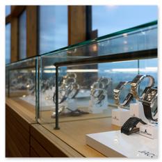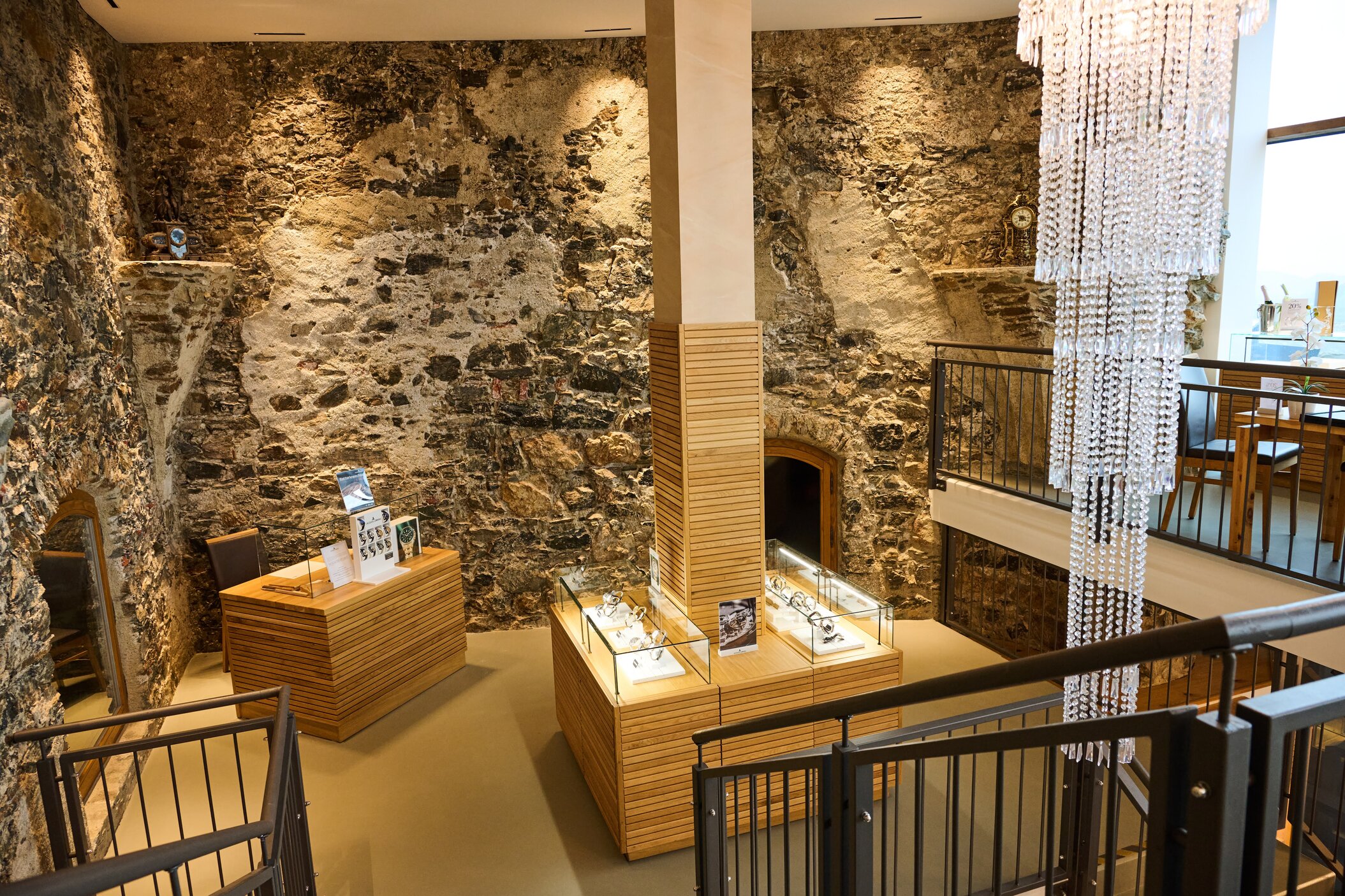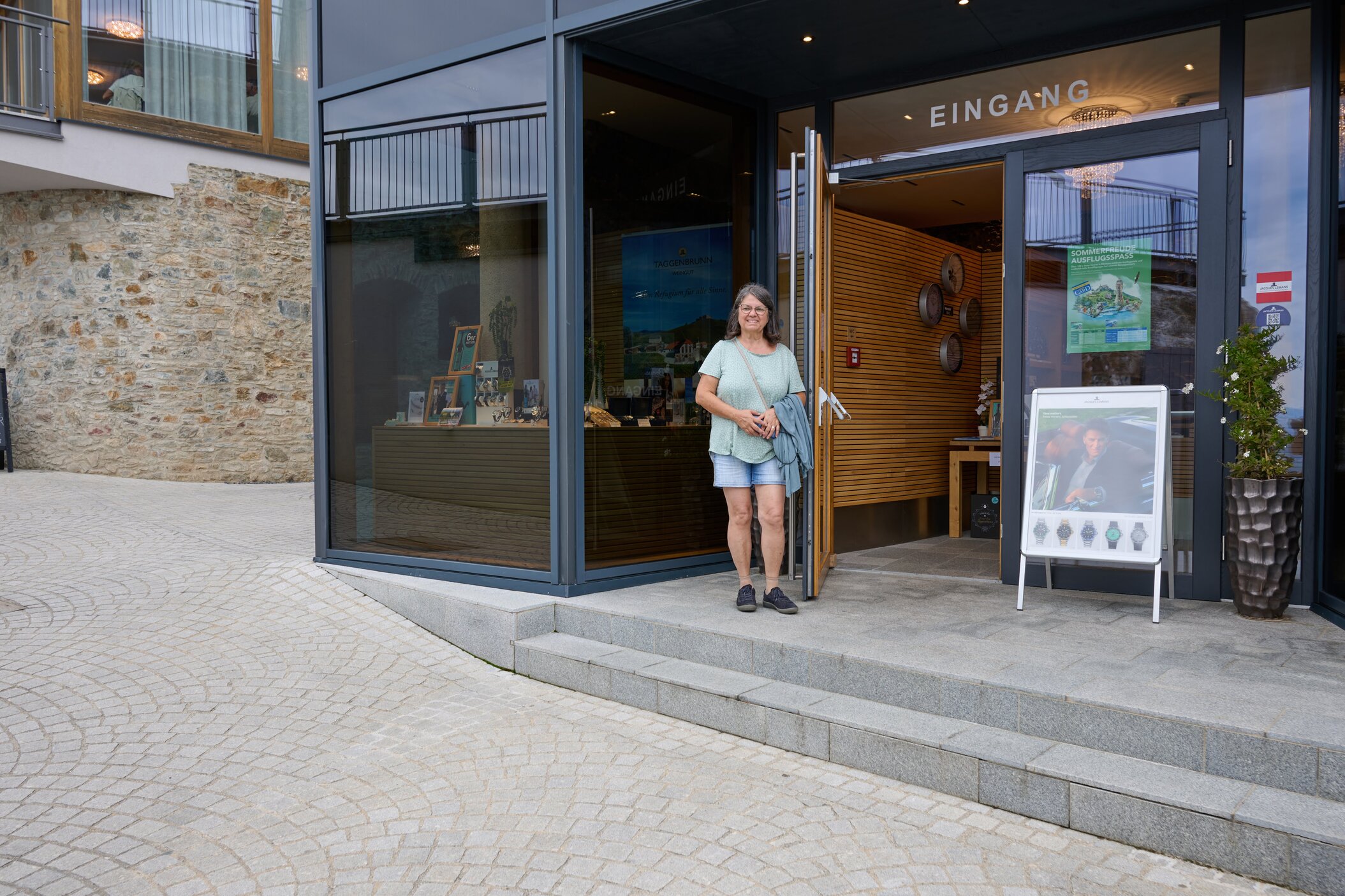 Wir schlendern durch die geschmackvoll gestalteten Räume, betrachten Zeitmesser und Kunstwerke, genießen Wein mit Weitblick und lassen die Atmosphäre wirken.
