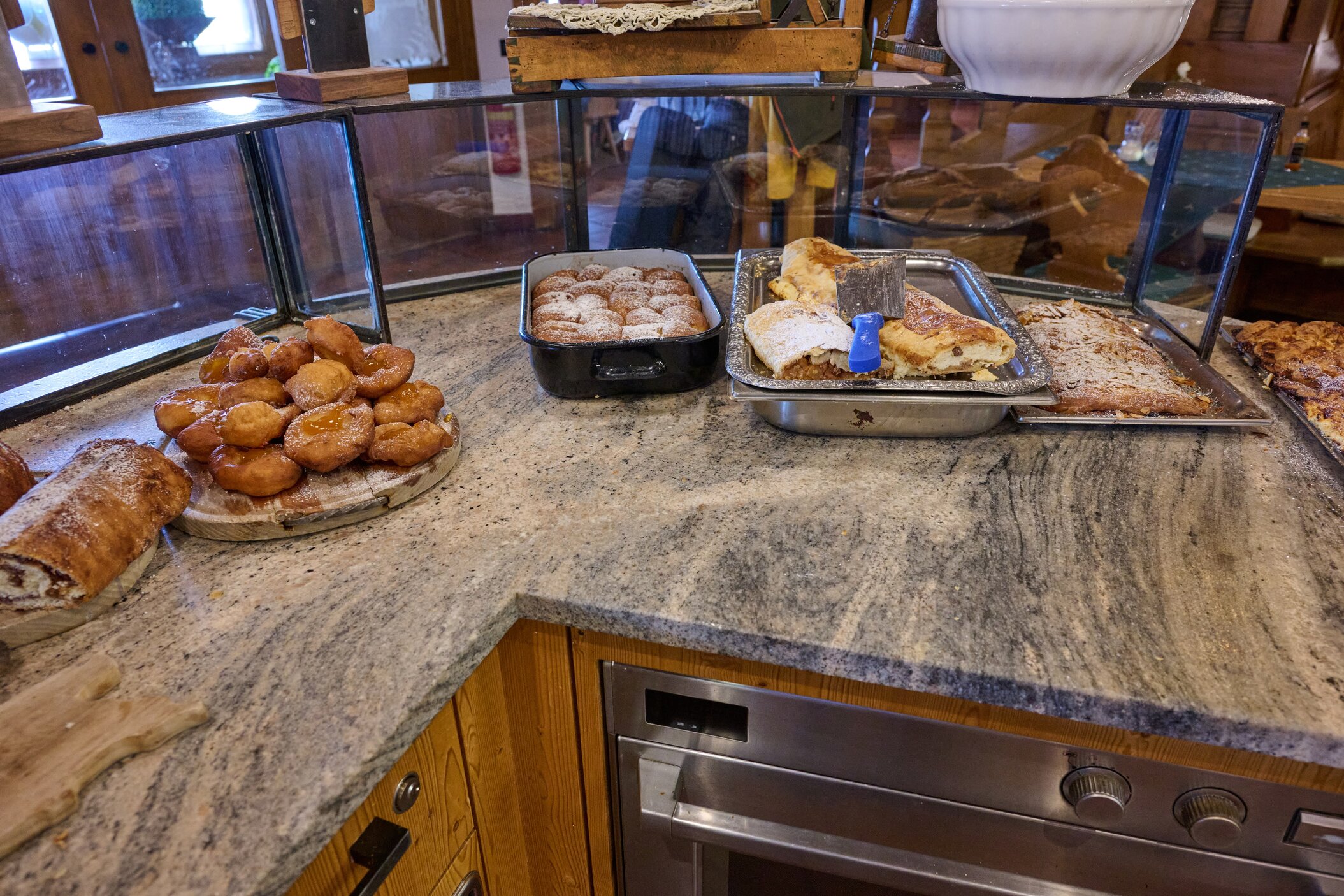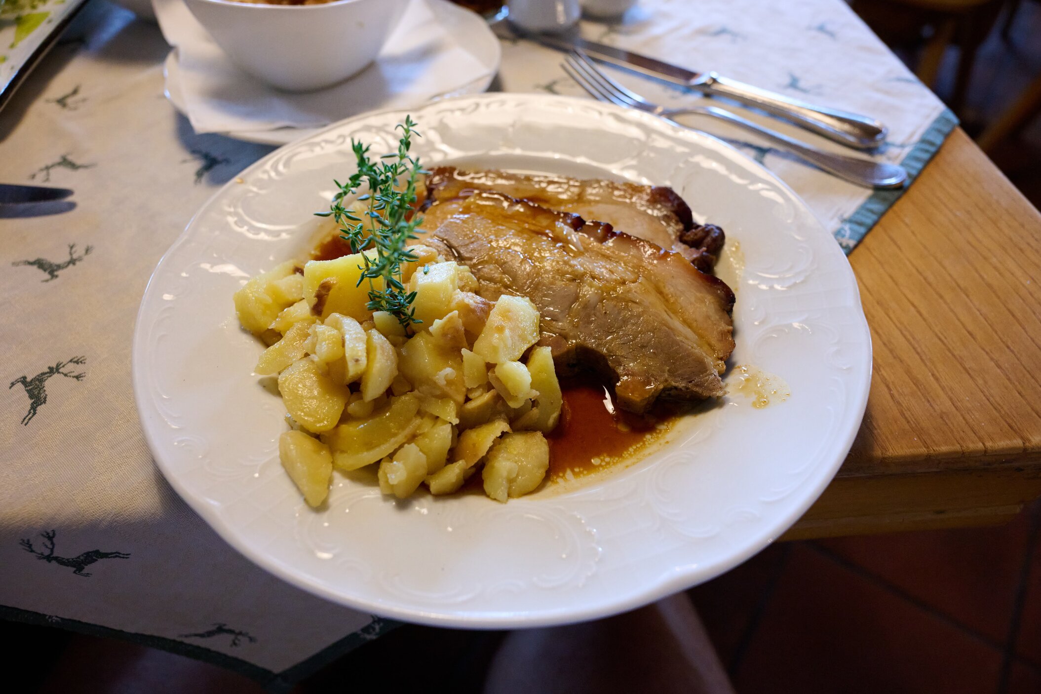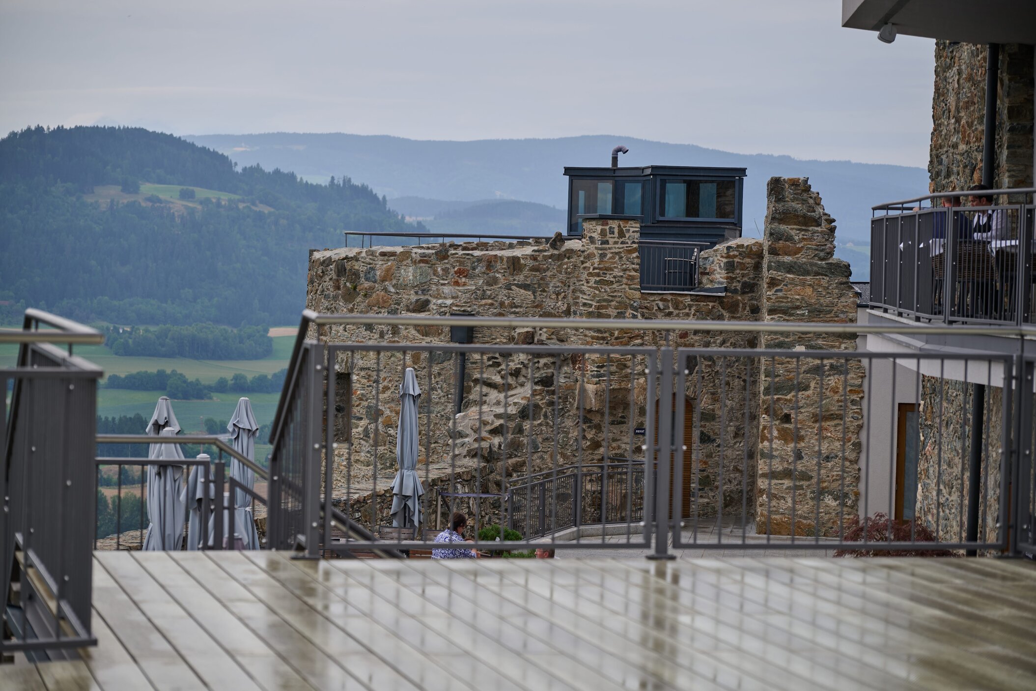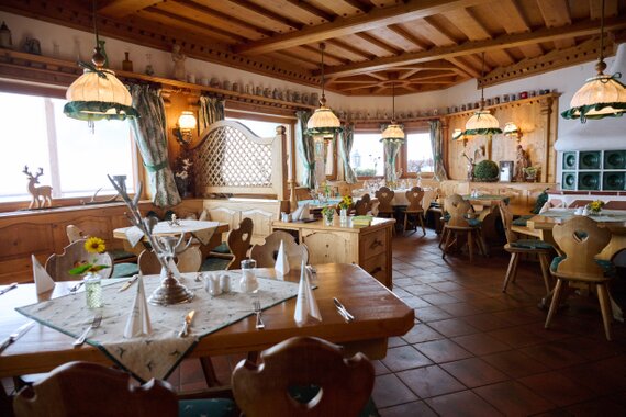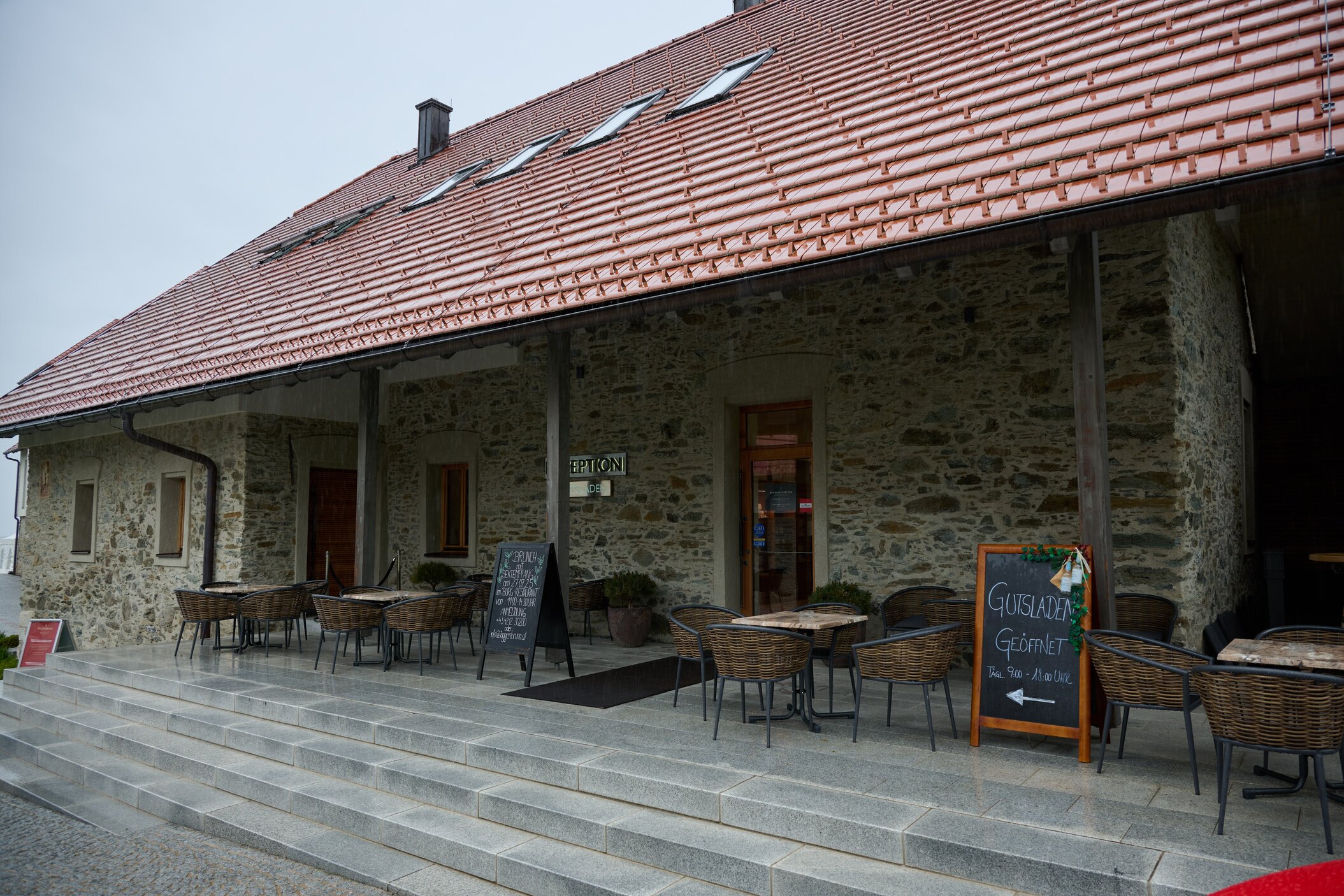 Oben angekommen, kehren wir im Gipfelhaus ein. Das Haus ist gepflegt, die Küche bodenständig und die Gastfreundschaft angenehm. Wir nutzen die Gelegenheit für eine Pause und ein warmes Essen.