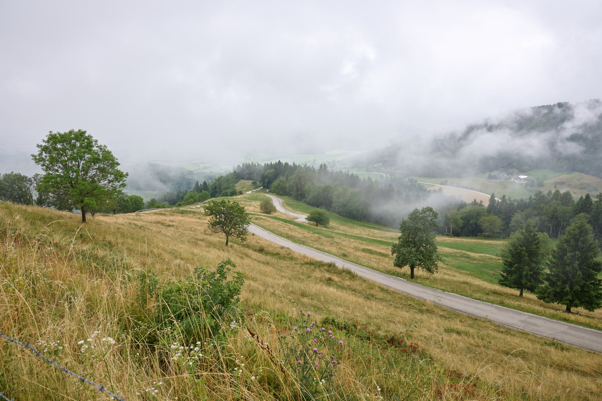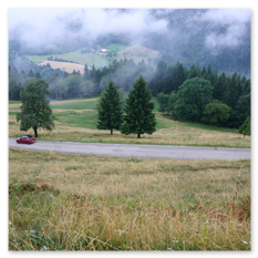 Wir fahren mit dem Auto hinauf zum Magdalensberg. Das Wetter zeigt sich wenig kooperativ: dichter Nebel, die Sicht beträgt kaum 10 bis 15 Meter.