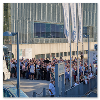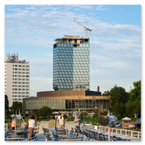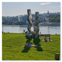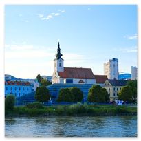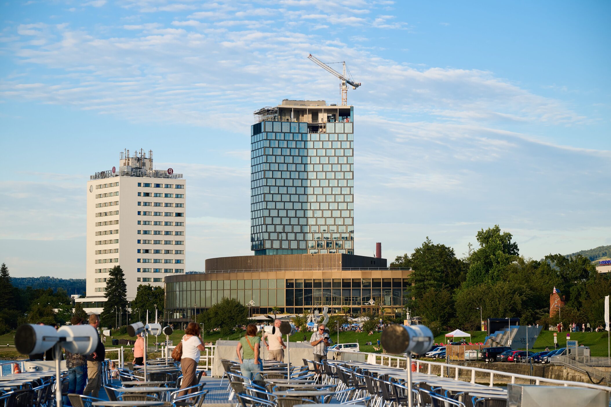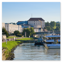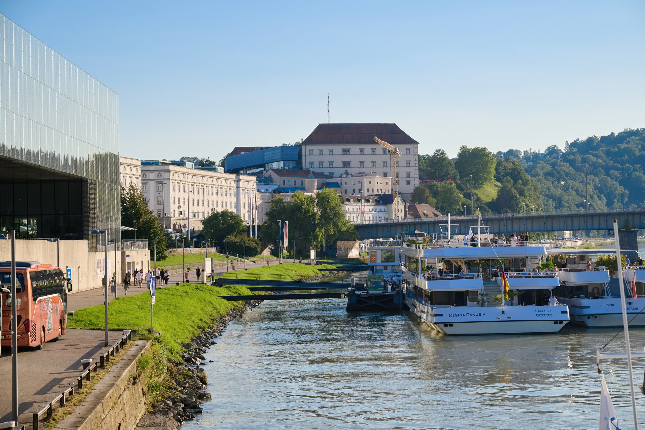Abfahrt in Linz, meist beim Donaupark nahe dem Kunstmuseum Lentos.