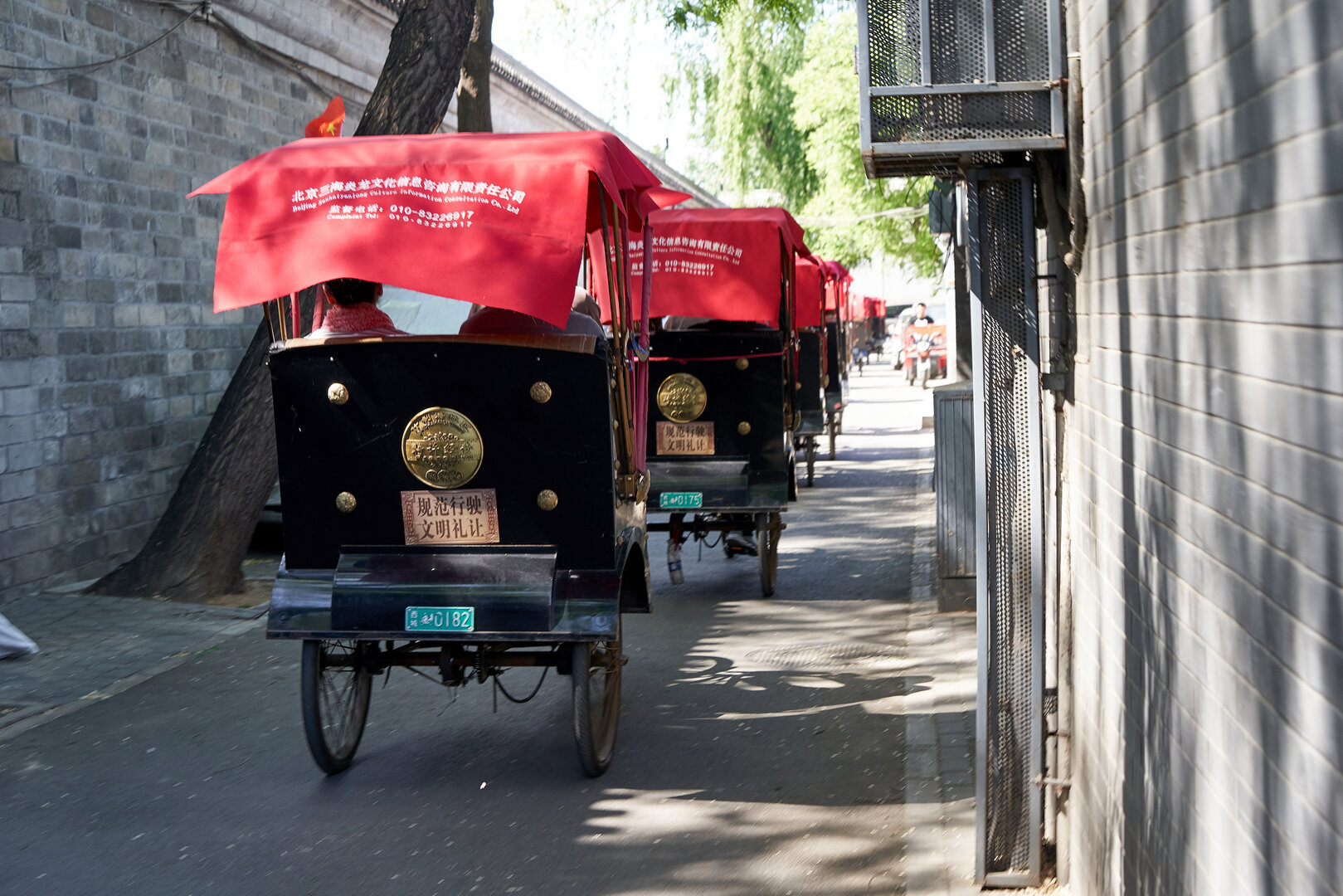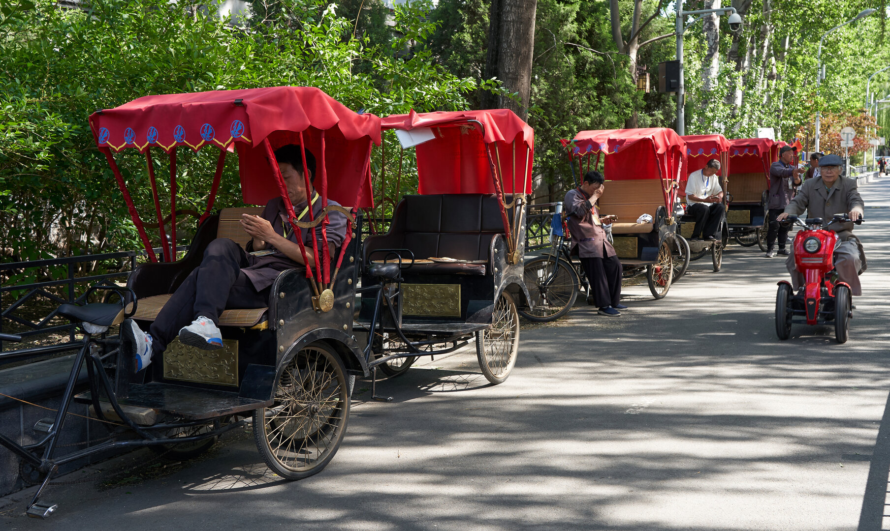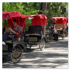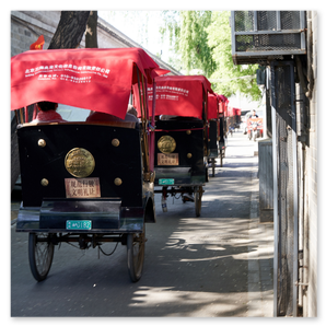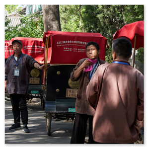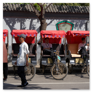 Wir lassen die monumentalen Hallen hinter uns und treten hinaus in die Gegenwart. Die Geräusche der Stadt dringen wieder durch, doch die Eindrücke bleiben. Zwischen Stein und Geschichte entsteht ein Raum, der nachwirkt.Die Bewegung wird langsamer. Mit der Rikscha gleiten wir durch enge Gassen, vorbei an kleinen Läden und offenen Türen. Es ist kein Spektakel, sondern ein stiller Blick in das gelebte Peking.