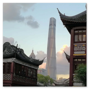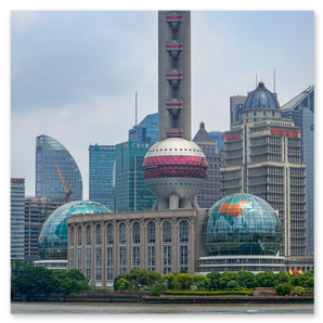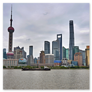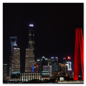 Zwischen dem historischen Bund und den gläsernen Türmen von Pudong entfaltet sich ein Stadtbild, das Gegensätze nicht auflöst, sondern inszeniert. Die Uferpromenade wirkt wie ein Bühnenrand, von dem aus sich die Skyline erhebt – eine vertikale Erzählung aus Licht, Stahl und Reflexion.