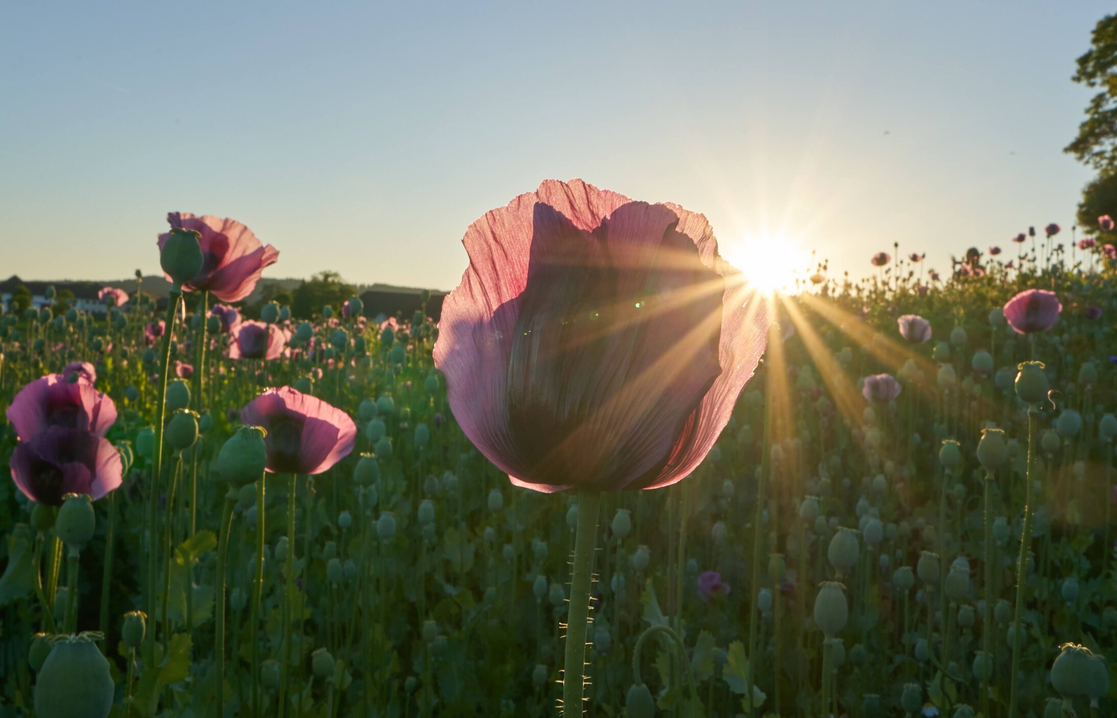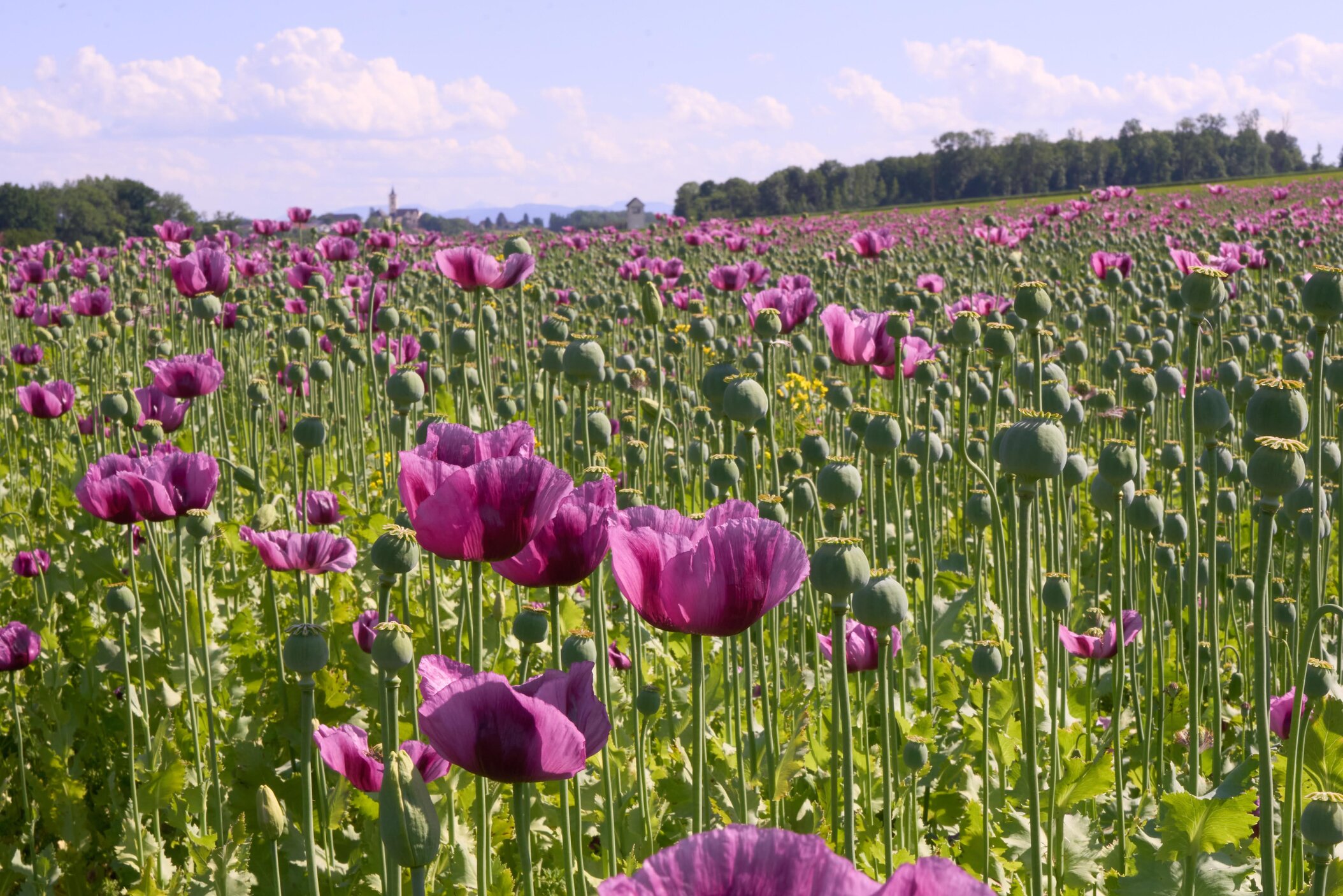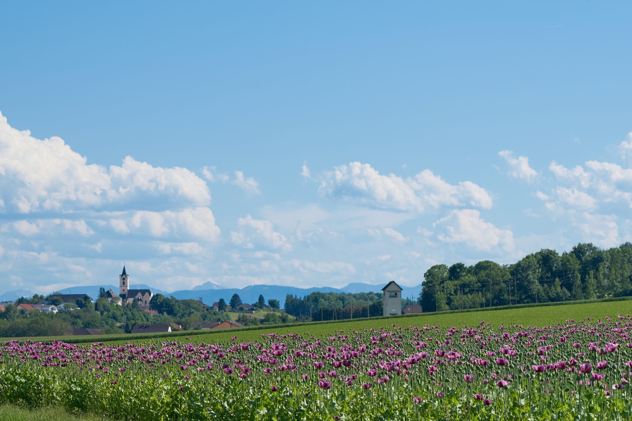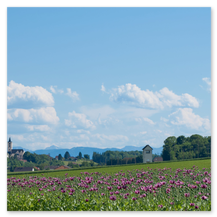 Jedes Jahr im Juli verwandeln sich die Felder in ein beeindruckendes Blütenmeer aus weißen, lila und roten Mohnblüten.