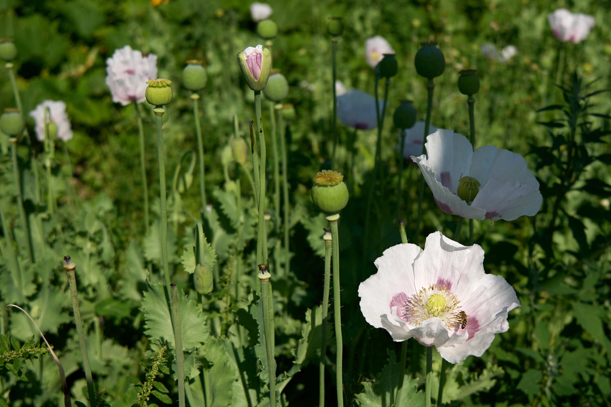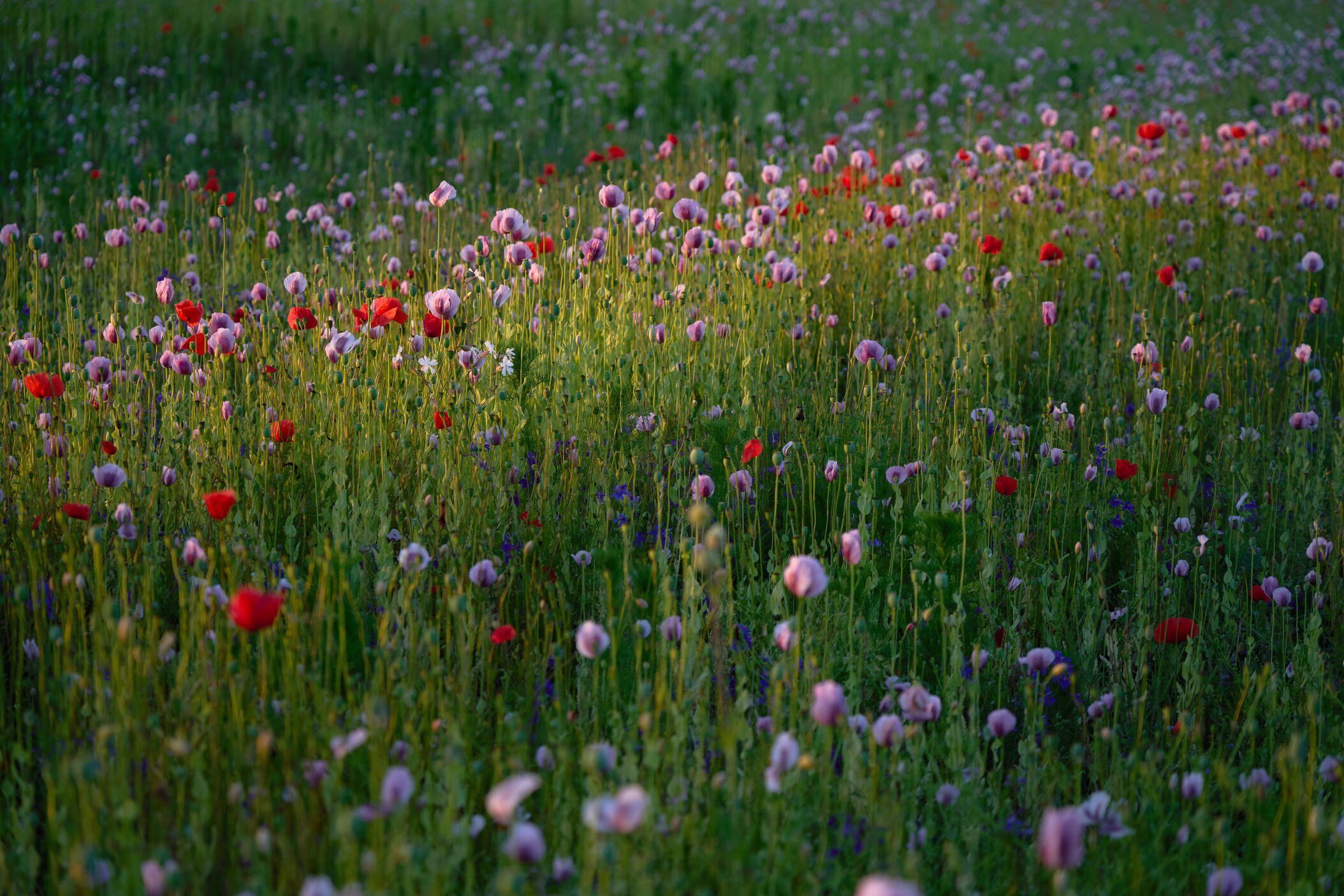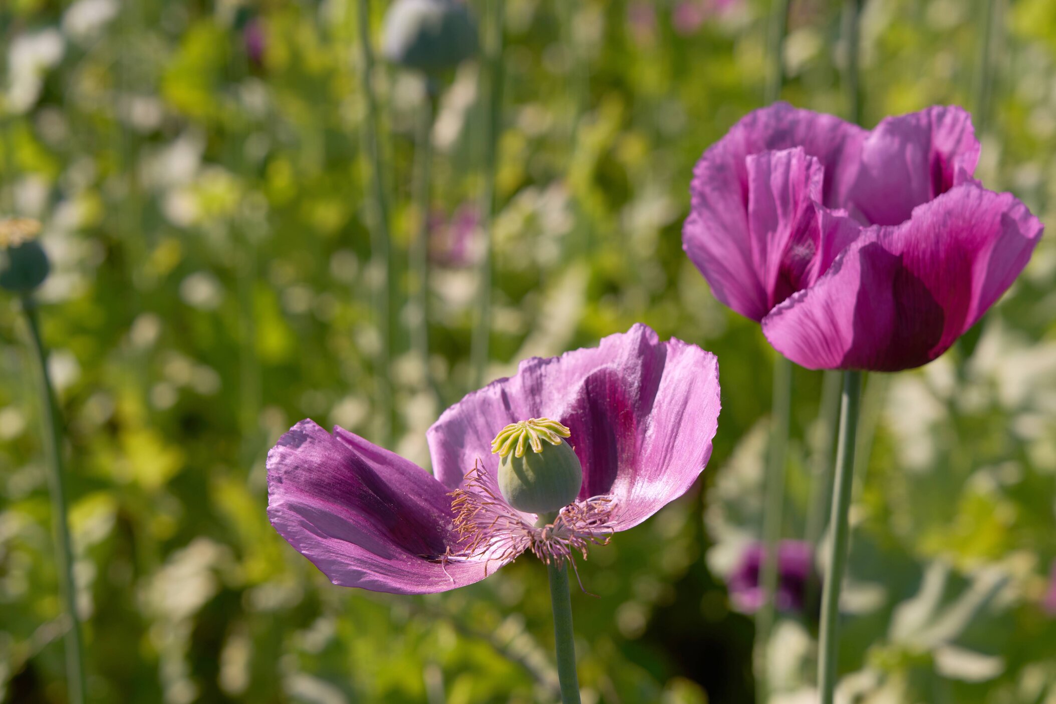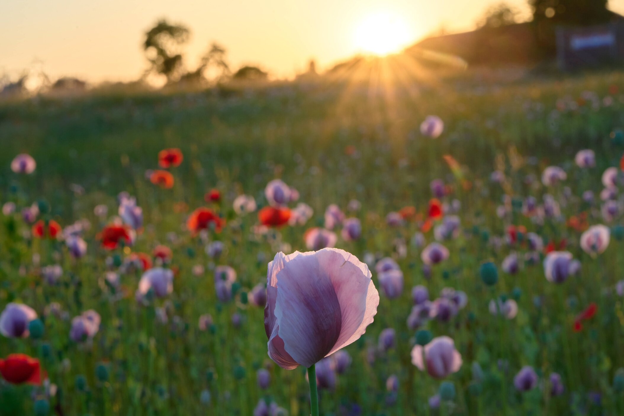 Jedes Jahr im Juli verwandeln sich die Felder in ein beeindruckendes Blütenmeer aus weißen, lila und roten Mohnblüten.