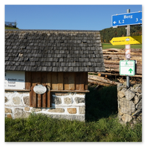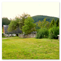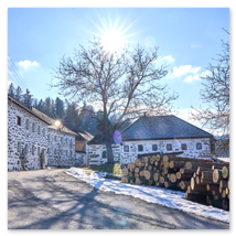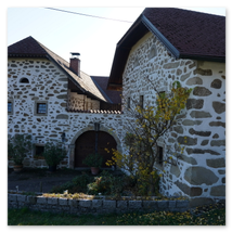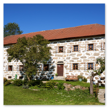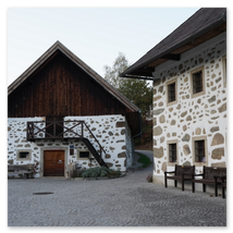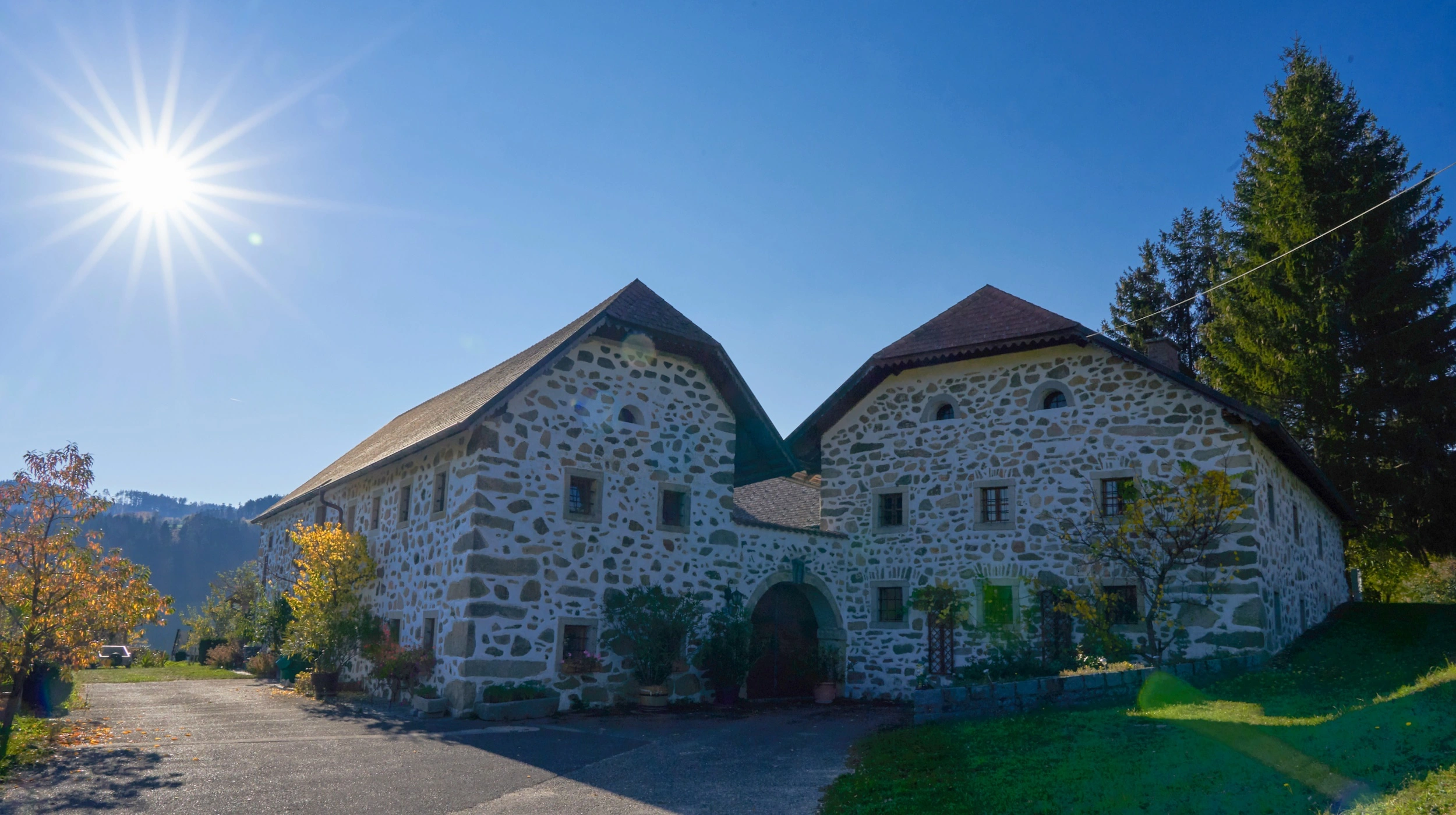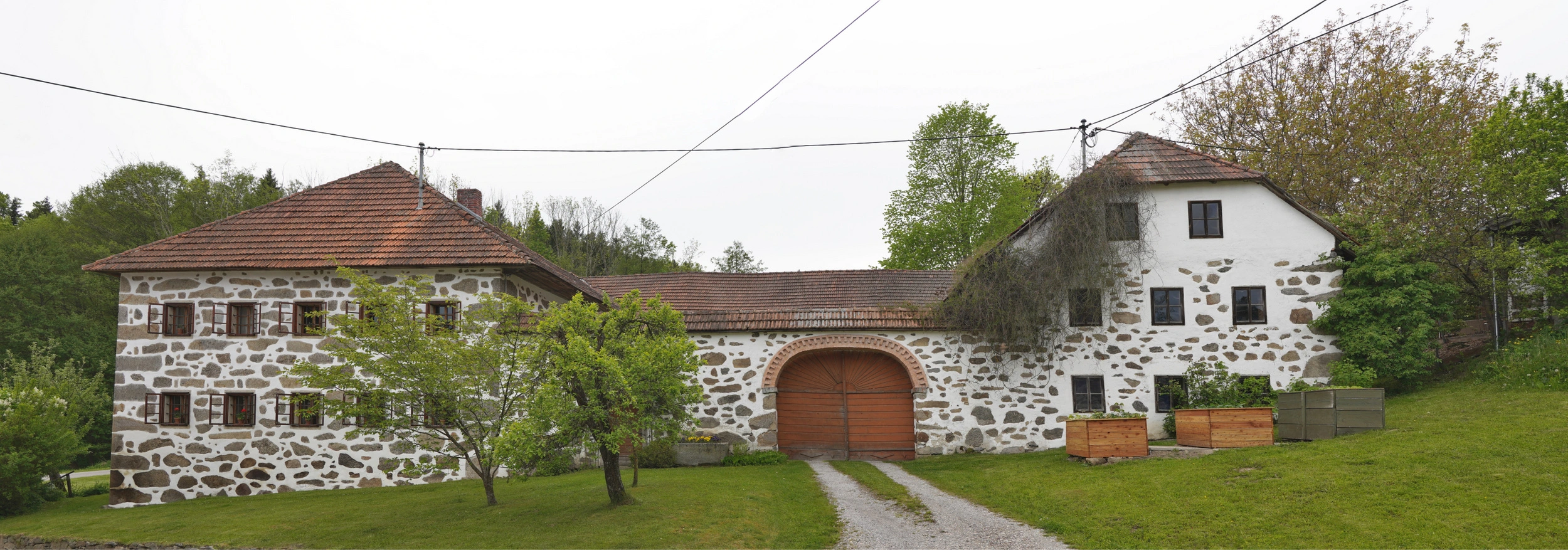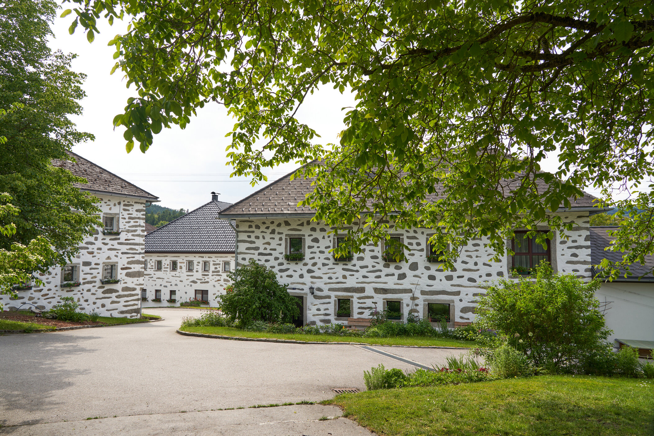 Ein Hofensemble aus fünf bis sieben Häusern, das die Steinbloßbauweise nicht nur zeigt, sondern lebt.