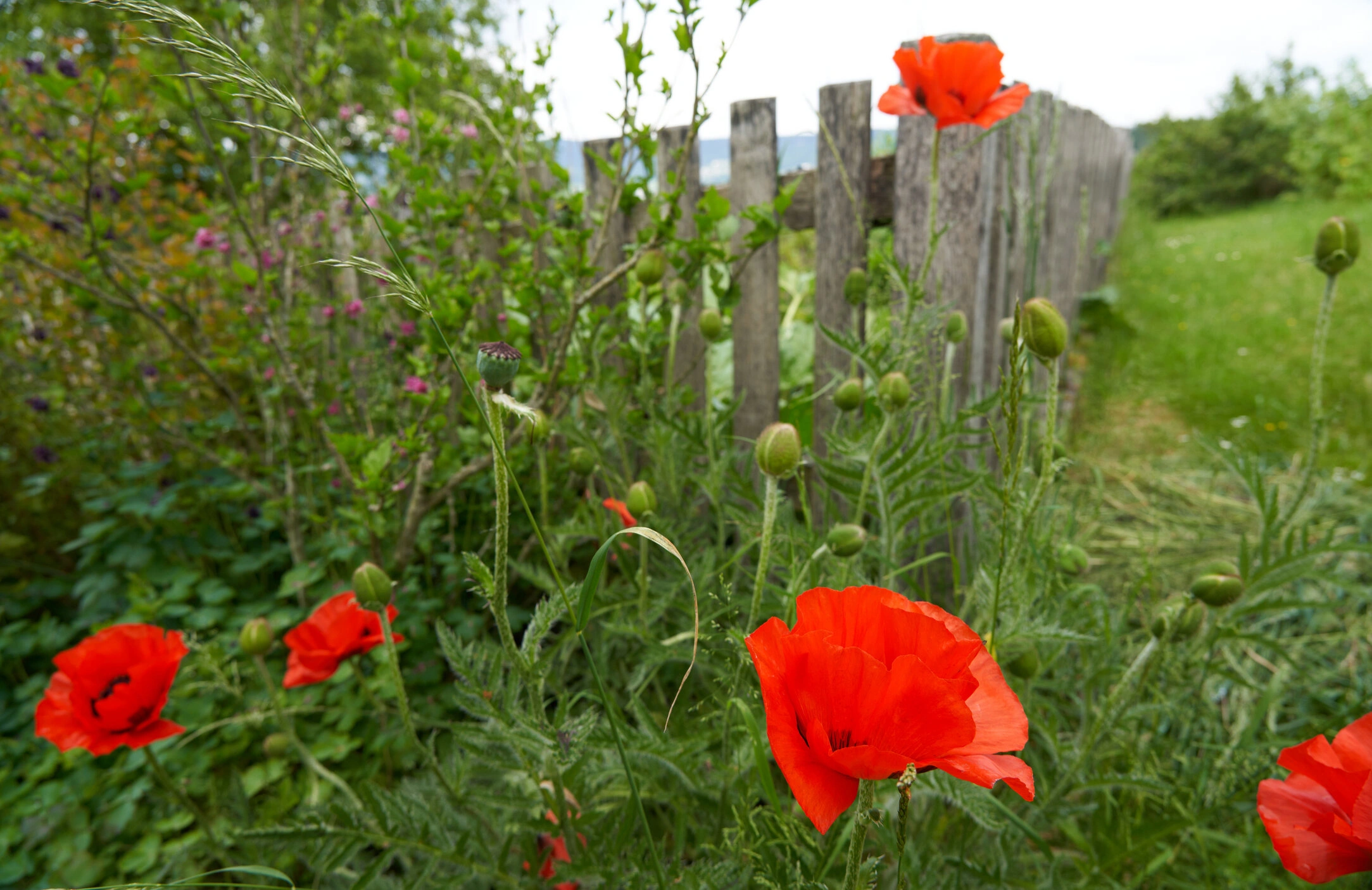 Beziehe das Umfeld mit ein: alte Zäune, Stadel, Blumen vorm Fenster