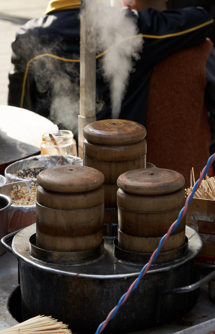 Xi’an überrascht uns immer wieder – und das muslimische Viertel ist ein weiteres Highlight auf unserer Reise.Sobald wir das Viertel betreten, spüren wir die besondere Atmosphäre: der Duft von Gewürzen liegt in der Luft, Händler rufen ihre Spezialitäten aus und die Straßen sind gesäumt von alten Blausteinen, die unter unseren Schritten sanft knirschen.Die rund 500 Meter lange Fußgängerzone ist ein lebendiges Zentrum der Hui-Nationalität, in dem sich Tradition, Religion und Genuss auf eindrucksvolle Weise verbinden.Wir kosten uns durch Halal-Gerichte und lokale Snacks, bewundern kunstvolle Gewänder und stöbern in kleinen Antiquitätenläden. Hier prallen Kulturen nicht aufeinander – sie verschmelzen.Das muslimische Viertel wird für uns zum Ort der Begegnung: zwischen Menschen, Aromen und Geschichten, die sich hinter jeder Ladenfront verbergen.Es ist nicht nur ein Paradies für Feinschmecker, sondern auch ein Fenster in das facettenreiche Leben in Xi’an.
